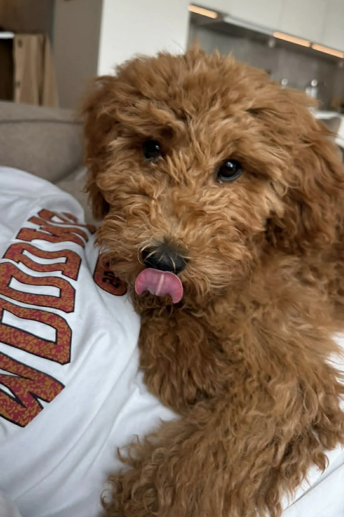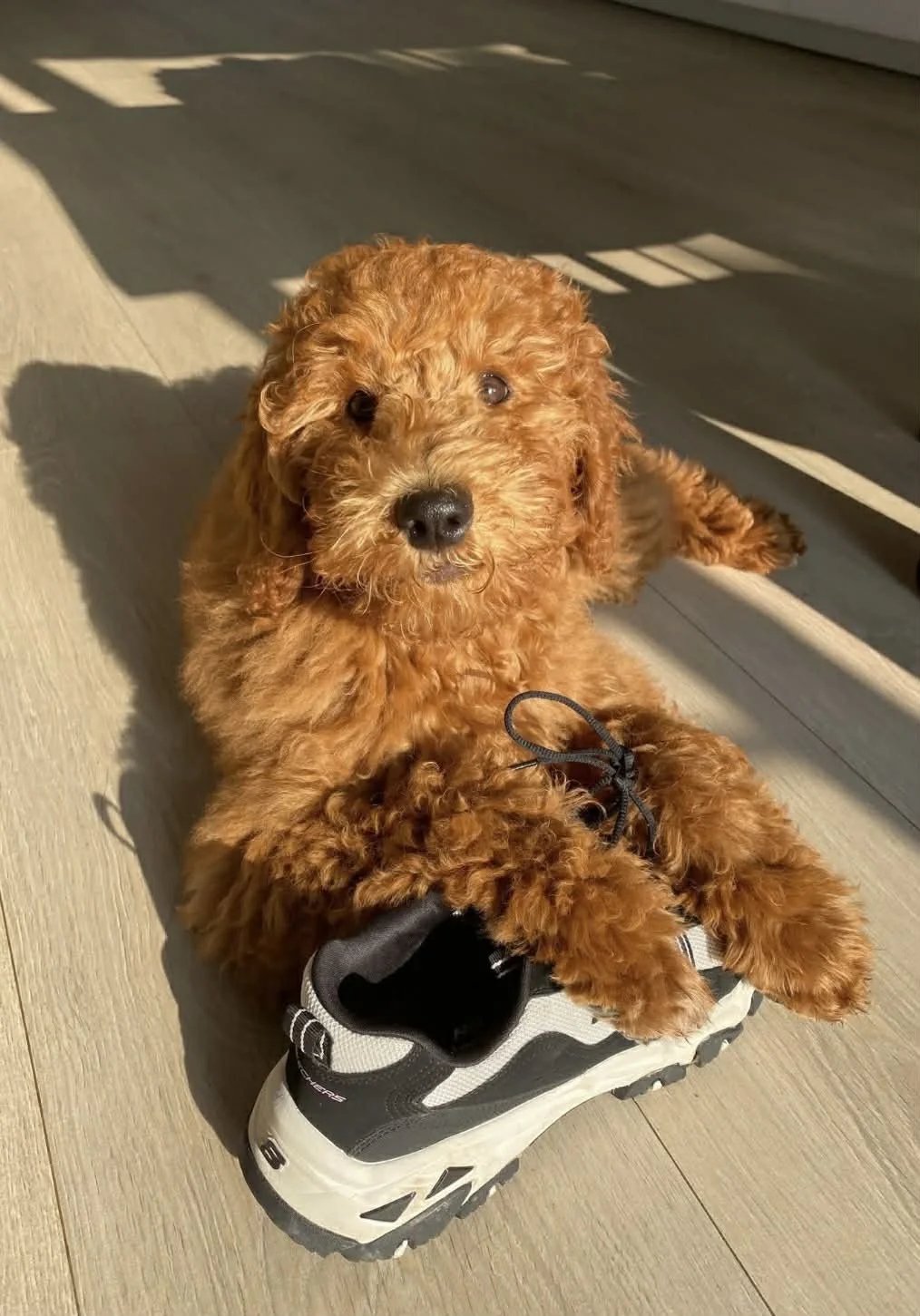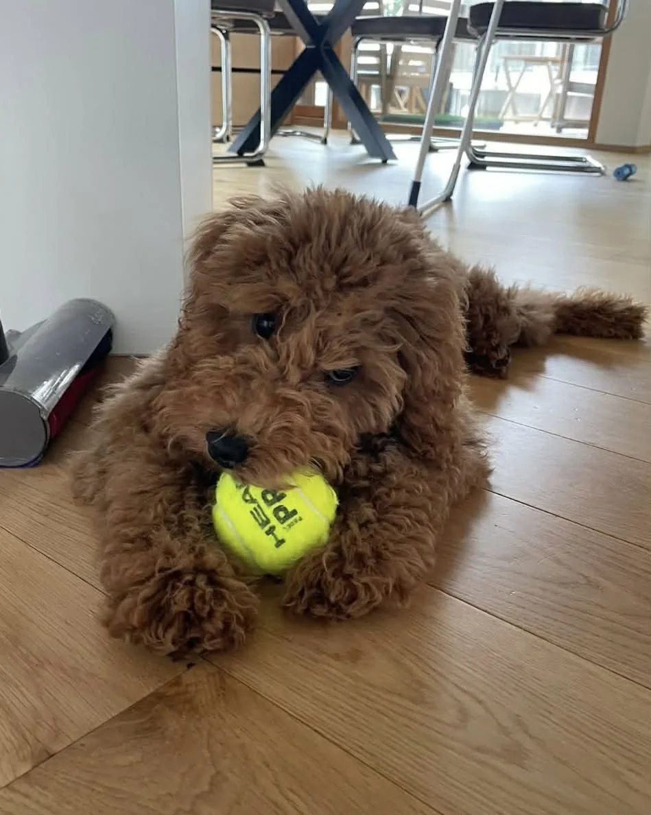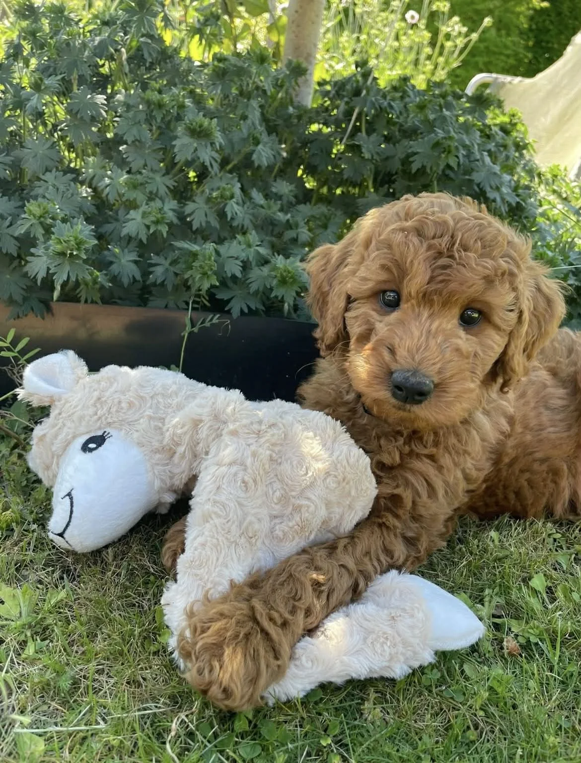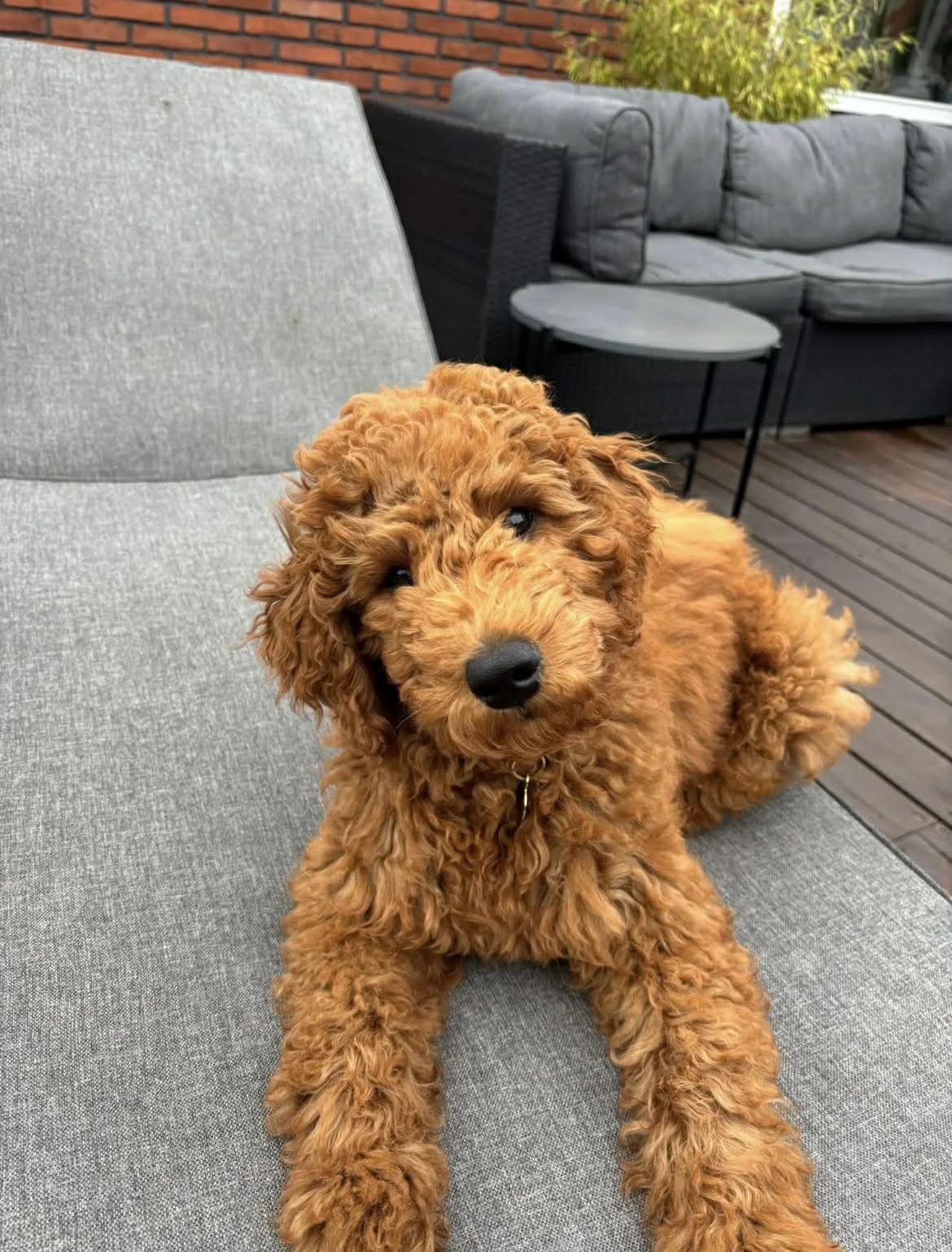 Som opdræt har vi primært fokus på Goldendoodles, men grundet en markant efterspørgsel på Labradoodles har vi investeret tid og ressourcer i at finde den helt rette Labrador i udlandet — udvalgt for sin sjældne, dybe røde farve og sit rolige, stabile temperament.