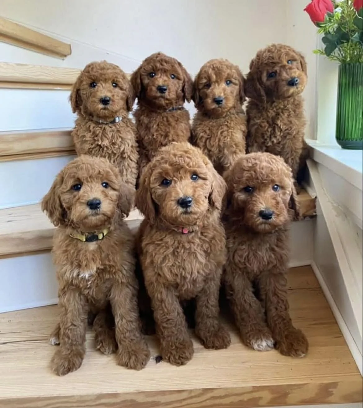 Billederne nedenfor er fra Novas tidligere Goldendoodle F1bb kuld (med en anden hanhund) – og giver et fint indblik i både udseende og udtryk 🐾